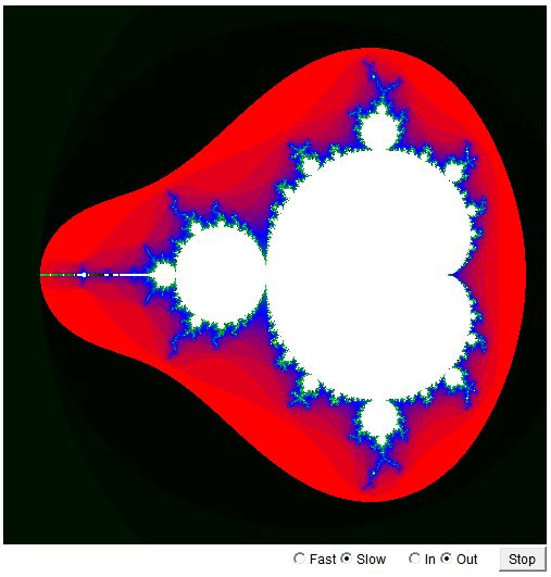 The exterior of the Mandelbrot set consists of points for which certain iterations diverge. Depending on how soon the divergence has been detected for a particular pixel, the pixel is assigned a register. After the picture has been drawn, one swaps the colors in the 16 registers in a cycling manner. The effect has been spectacular.