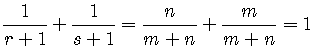 $\displaystyle\frac{1}{r+1}+\frac{1}{s+1}=\frac{n}{m+n}+\frac{m}{m+n}=1.$