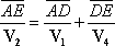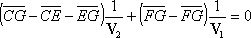 We substitute 1/V3, from (1), and 1/V4 , from (2), into (3).