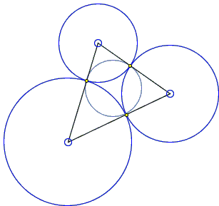The theorem is also easily proved algebraically. Denote the three circles C(A, ra), C(B, rb), C(C, rc), where A, B, C are there centers and ra, rb, rc their radii. Also, introduce three quantities: