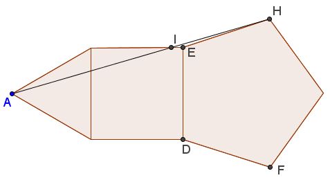 It is interesting to observe that the presence of a triangle and a square, however visually and intellectually appealing, is much less relevant to the appearance of the Golden Ratio than that of the pentagon. Indeed, for any position of $A\;$ on the axis of symmetry of the pentagon, the ratio will be the same, provided point $I\;$ on $AH\;$ is at the same distance from the axis as the vertex $E:$
