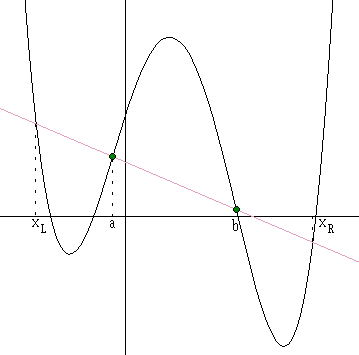 Assume the graph of a 4th degree polynomial has inflection points with abscissas $a$ and $b,$ $a \lt b.$ The straight line through the inflection points meets the graph in two other points with abscissas $x_{L}$ and $x_{R}$ say: $x_{L} \lt a \lt b \lt x_{R}.$