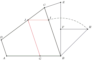 The dashed line is formed by two semicircles of diameter $\phi$ and two semicircles of diameter $\phi ^{-1}.$