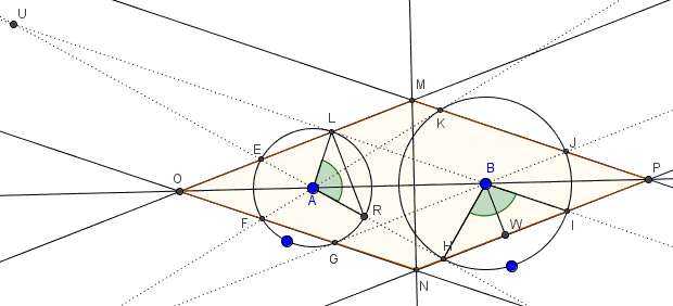 We conclude that $LR\parallel BW$ but one is perpendicular to $MO,$ the other to $NP$ such that $MO\parallel NP.$ Similarly, $ON\parallel MP,$ implying that $MONP$ is a parallelogram. However, by symmetry, $MP=NP$ and $MO=NO,$ which proves that $MONP$ is indeed a rhombus, as required.
