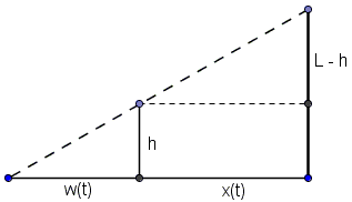 \(\displaystyle \frac{x(t)}{L-h} = \frac{w(t)}{h}\).